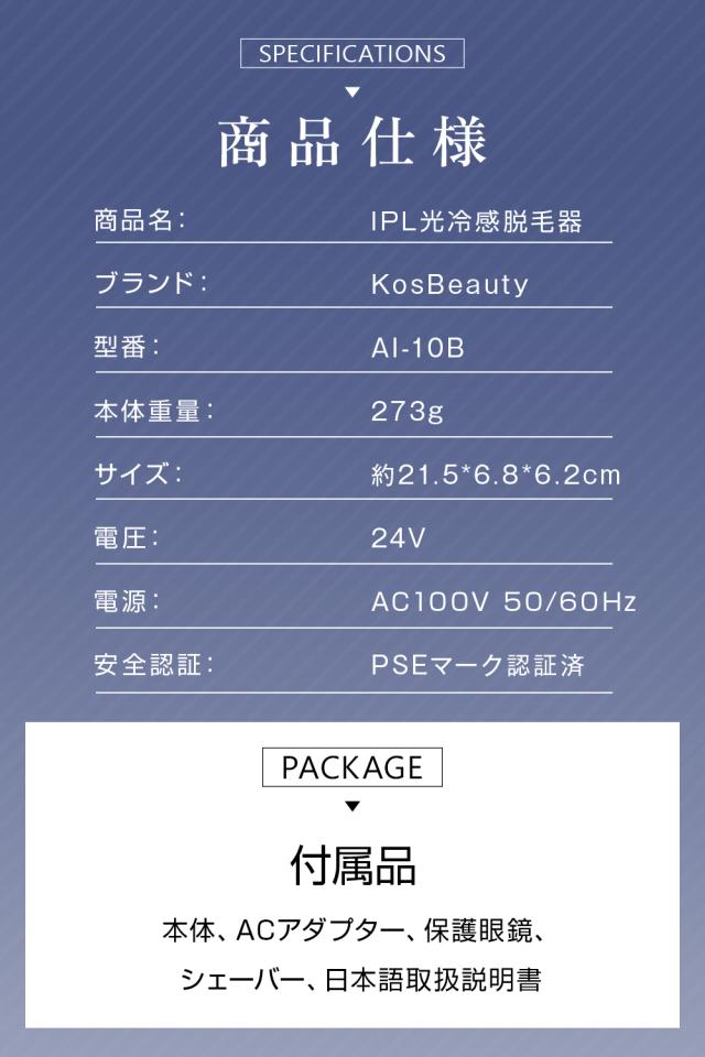 ●付属品:本体、ACアダプター、保護眼鏡、シェーバー、日本語取扱説明書