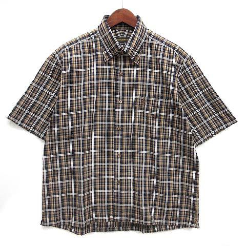 【中古】キンロックアンダーソン Kinloch Anderson サッカー チェック ボタンダウン シャツ 半袖 ロゴ刺繍 ブラウン 茶 L U5102 メンズ