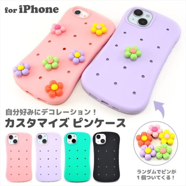 スマホケース iPhone15 iPhone14 かわいい デコレーション ピン カスタマイズ 15Pro iP13 韓国 デコ シリコン なめらか 14Pro iPhone SE 7 8 アイフォン 携帯 耐衝撃 シンプル おしゃれ 推し活 オタ活 韓国ケース ピンク グリーン パープル ブラック 手触り
