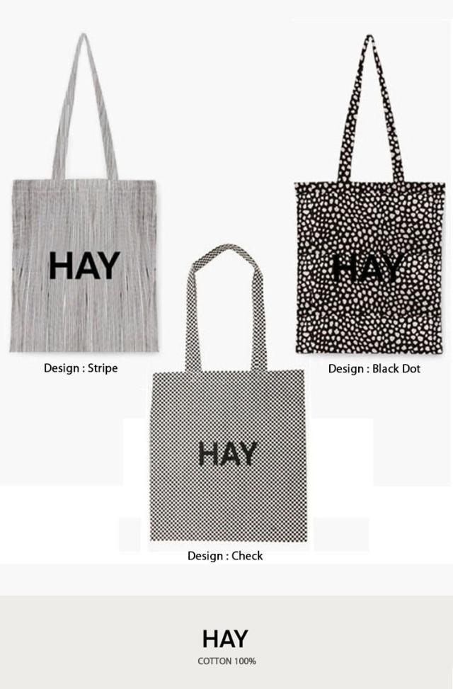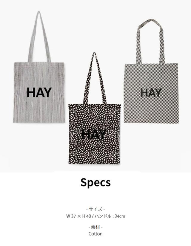 【即納商品あり/国内配送】HAY ヘイ トート バッグ TOTE BAG BLACK DOT STRIPE CHECK コットンバッグ ブラックドット ストライプ チェック