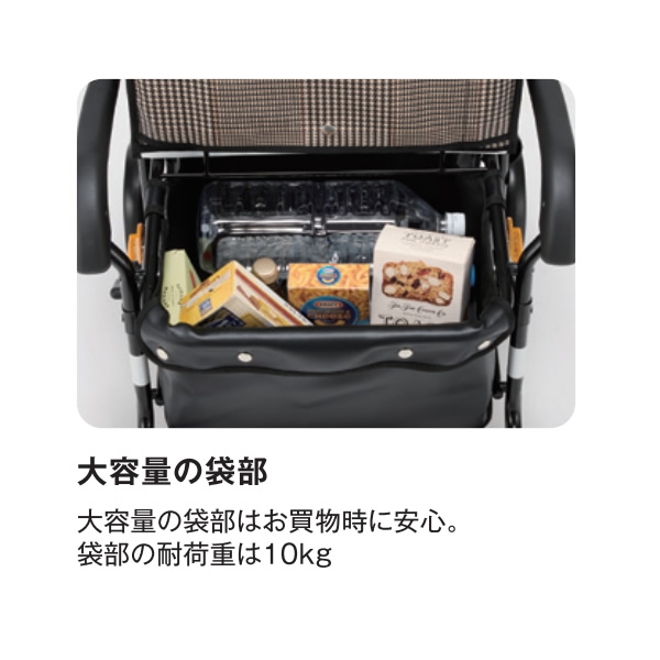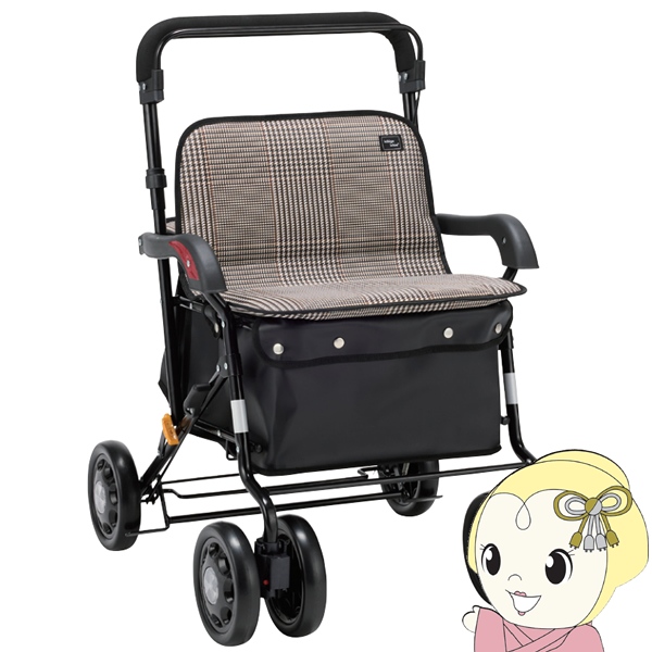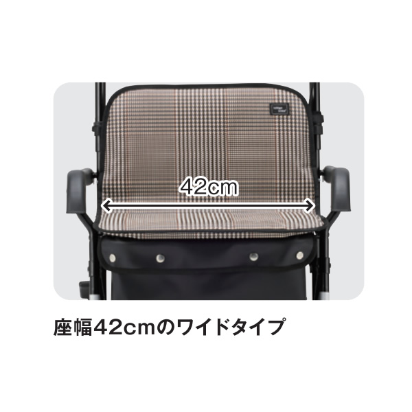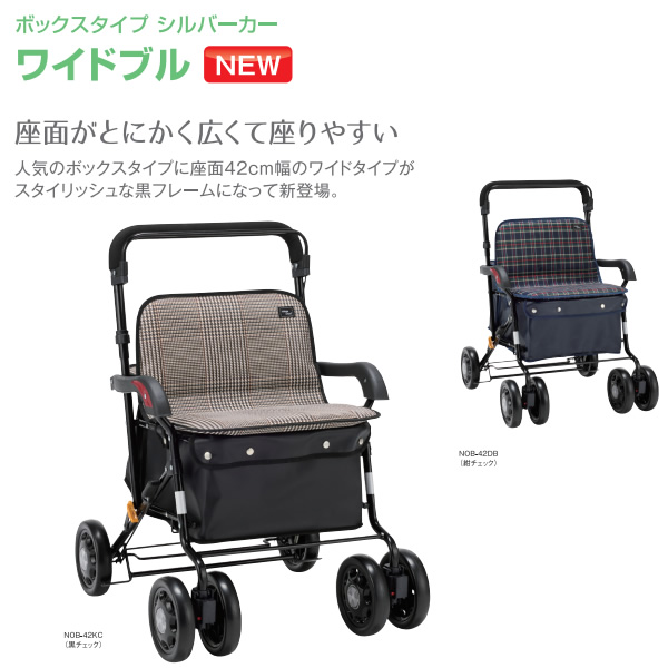 シルバーカー ボックスタイプ ワイドブル マキテック 座れる 手押し車 黒チェック NOB-42KC