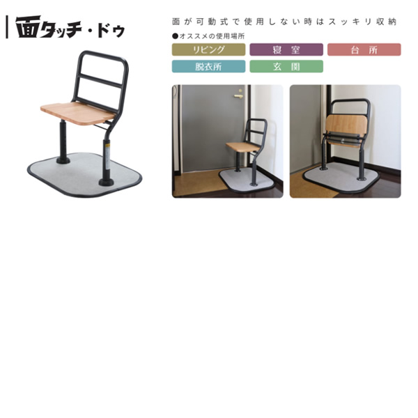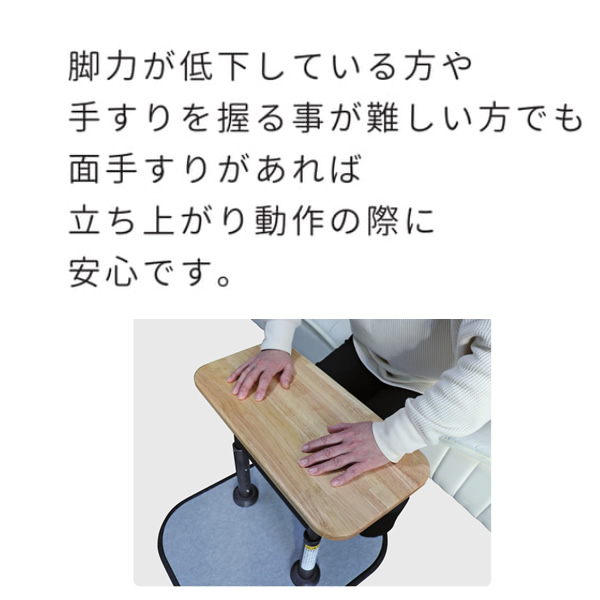 ・通常の床置き手すり(べース+ハンドル)よりも面手すり部分が ついてありますので、布団やベッド・座椅子からの起き上がり・立ち上がりが 非常に楽になります。