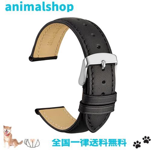 [WOCCI]時計ベルト20mm 時計替えベルト ヴィンテージ 腕時計バンド 本革(ブラック/同色系ステッチ)調整工具とバネ棒付