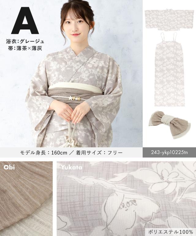 浴衣 セット レディース 二部式浴衣 セパレート ワンピース 浴衣セット 兵児帯 2way 大人 3点セット 簡単 悩まない 涼しい コーディネート済み モダン 紺 グレージュ 花柄 おしゃれ 可愛い フリー 送料無料