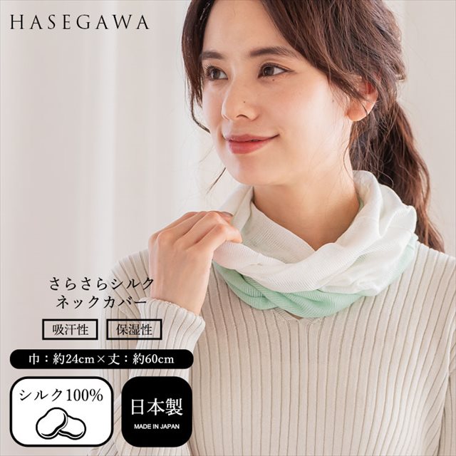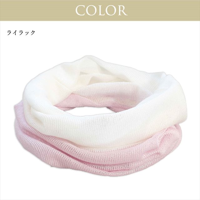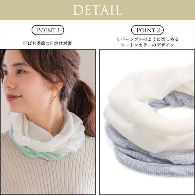 さらりと軽い着用感ですので、汗ばむ季節の日焼け対策や、クーラーで冷えてしまいがちな首周りのケアにおすすめです。