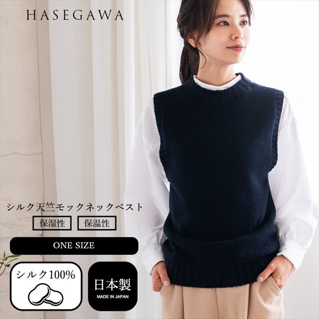 h01 シルク 天竺 モックネック ベスト セーター 袖なし トップス ニットトップス シルク100% レディース シルクセーター ニットベスト あたたかい 暖かい 敏感肌 肌にやさしい 女性 かわいい おしゃれ 天然 保湿 絹糸 日本製 春 秋 冬 長谷川シルク HASEGAWA SILK 【mail】
