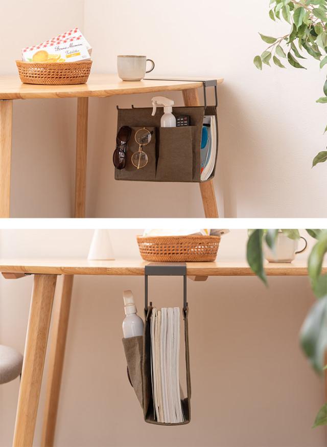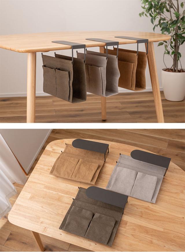 机下 収納 吊り下げ バッグ 連結 テーブル下 ハンギング おしゃれ パソコン タブレット 収納バッグ 収納鞄 かばん コンパクト ベラム紙 シンプル カジュアル