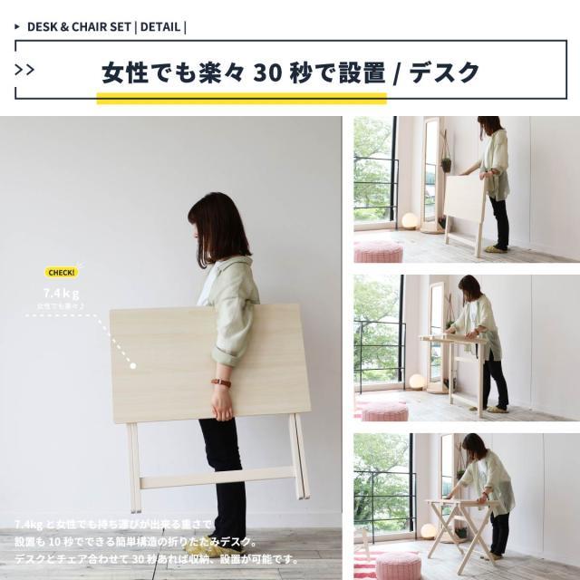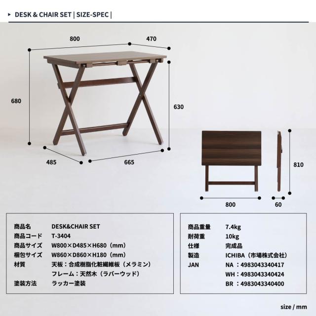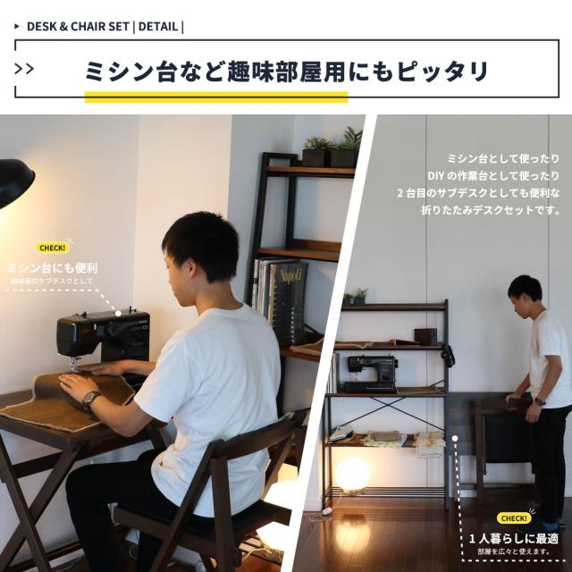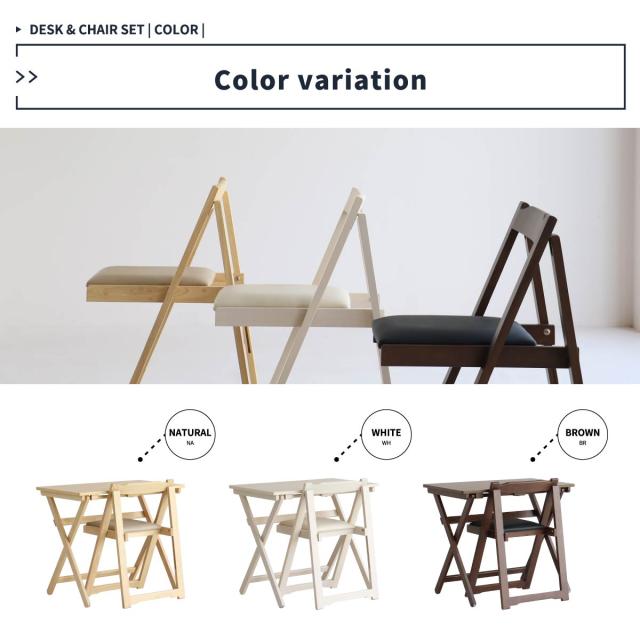 完成品 デスク&チェアセット 机椅子セット デスクチェア パソコンデスク 作業机 学習机 勉強机 作業台 ミシン台 折りたたみ おしゃれ シンプル コンパクト 北欧 木製 ホワイト ブラウン TS-3404 幅80cm 2色対応