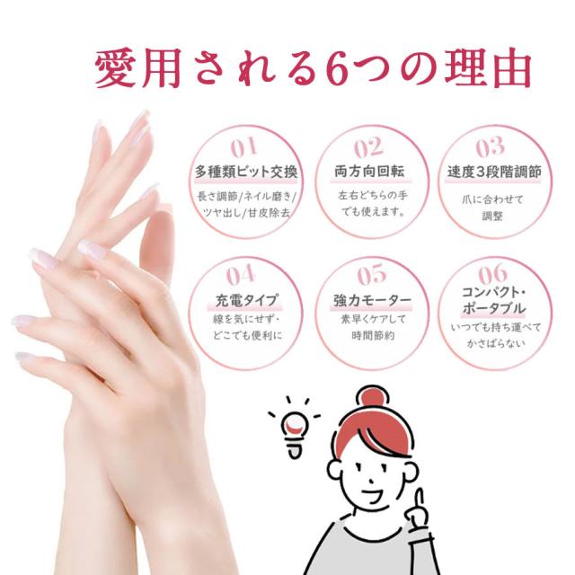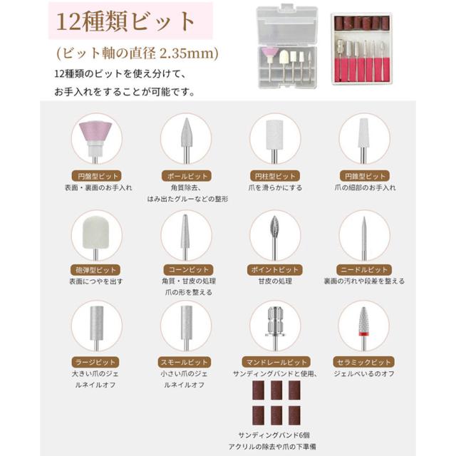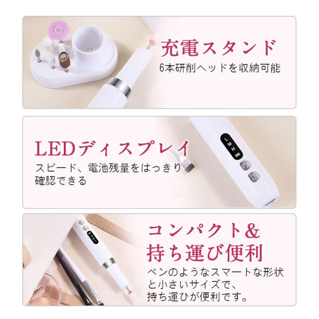 ネイルマシン 電動 ネイルオフ 甘皮処理 爪削り 高速回転 ビット付き 爪磨き 角質除去 爪やすり 充電式 正/逆回転 3段階調整