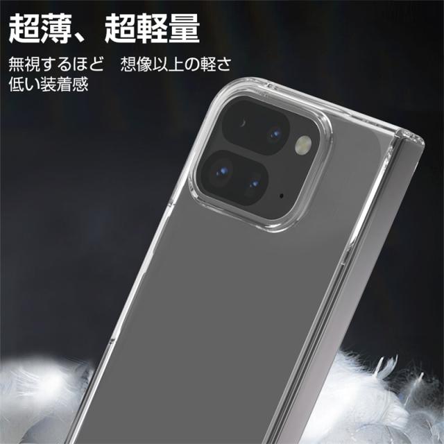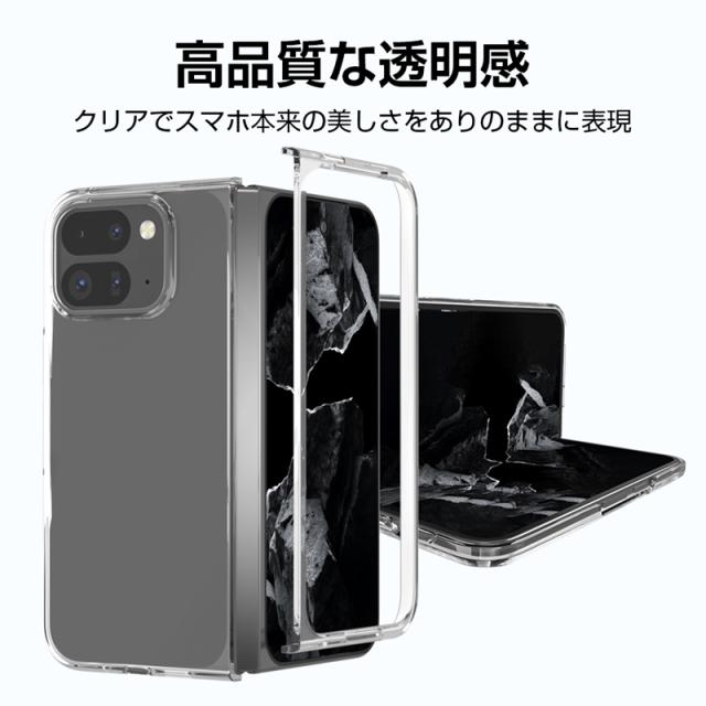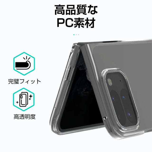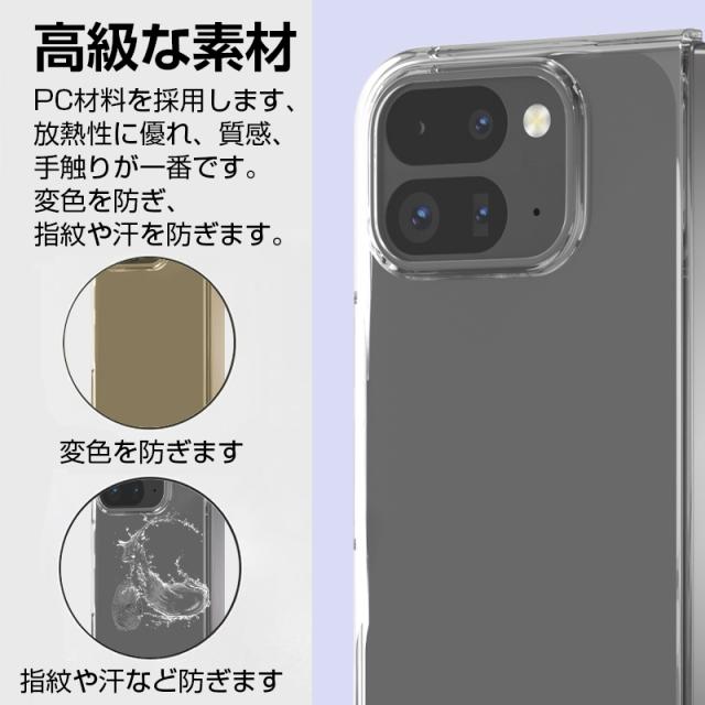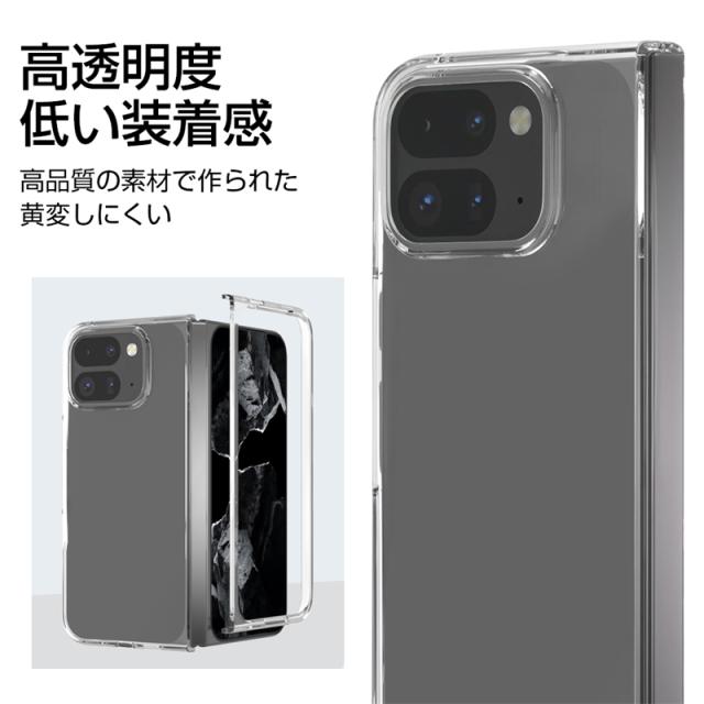 【デザインを邪魔しないクリアカバー】外国から輸入した高品質なPC素材を使用し、特殊加工により高い透明度を実現、Google Pixel 9 Pro Fold本体の美しさを際立たせます。本体デザインをそのまま活かしながら、傷から保護するためのクリアハードケースです。