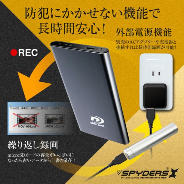 A-619Σ | フルHD モバイルバッテリー型カメラ 小型カメラ スパイカメラ オンスクエア スパイダーズX