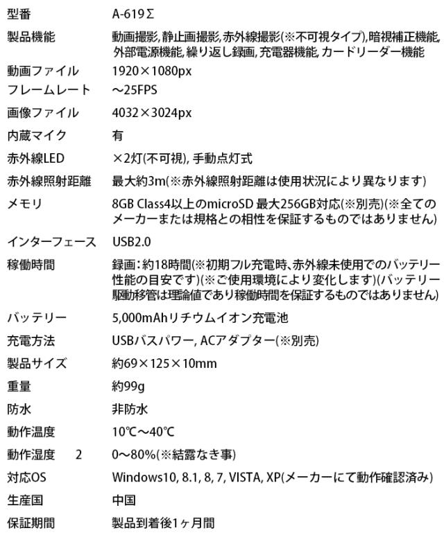 A-619Σ フルHD モバイルバッテリー偽装型カメラ