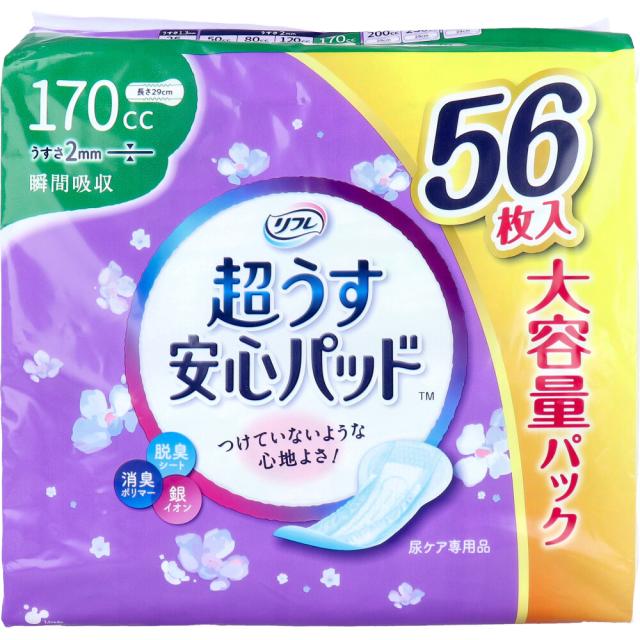リフレ 超うす安心パッド 長時間・夜も安心用 大容量パック 170cc 56枚入 【3月26日までの特価】