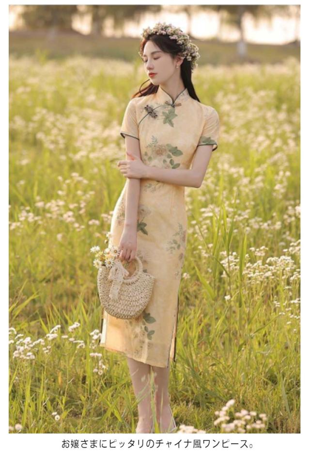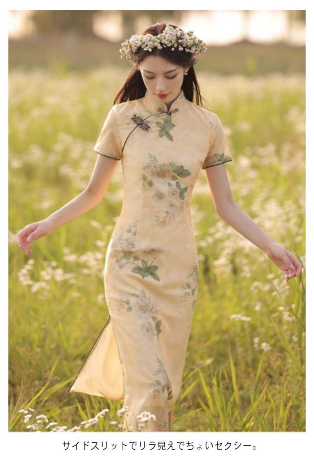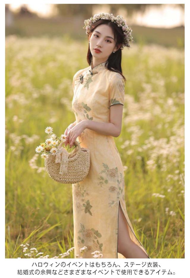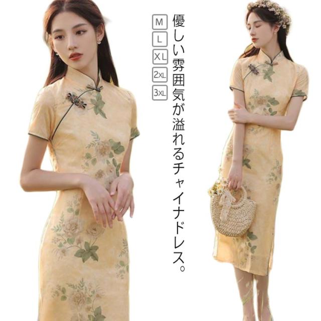 チャイナドレス 春夏 立ち襟 レディース お呼ばれ 夏 半袖 チャイナ風ワンピース ワンピース 花柄 スリット パーティードレス 結婚式 二次会 フォーマル 通勤 チャイナドレス ロングワンピース ミモレ丈 20代30代40代 可愛い