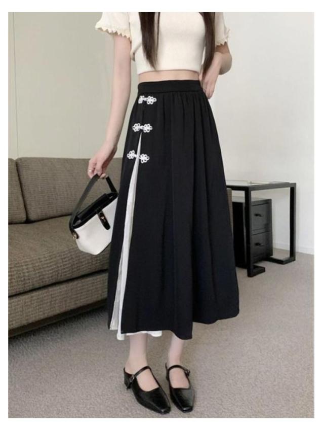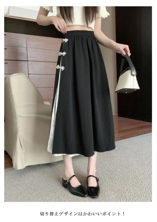 きれいめ スカート 春 夏 お茶会 女子会 チャイナ風 チャイナボタン 大きいサイズ 大人可愛い お出かけ チャイナ風 ロングスカート デイリーユース エレガント お呼ばれ 20代 30代 40代 L XL 2XL 3XL