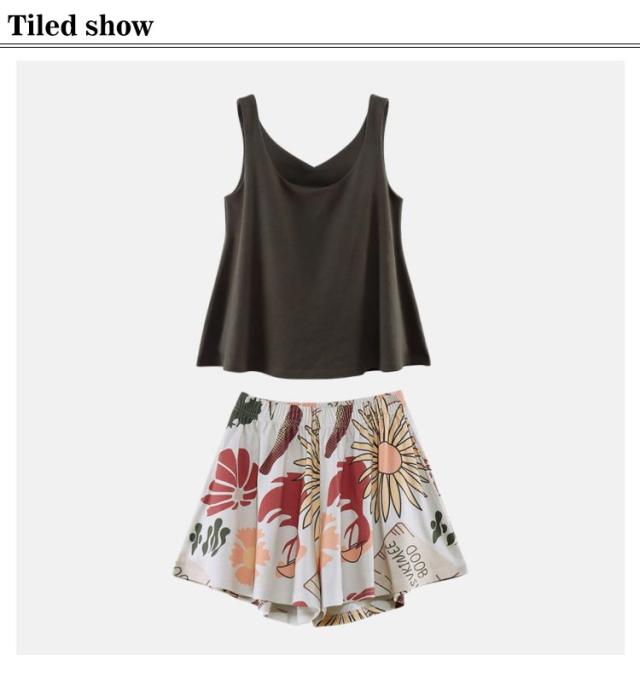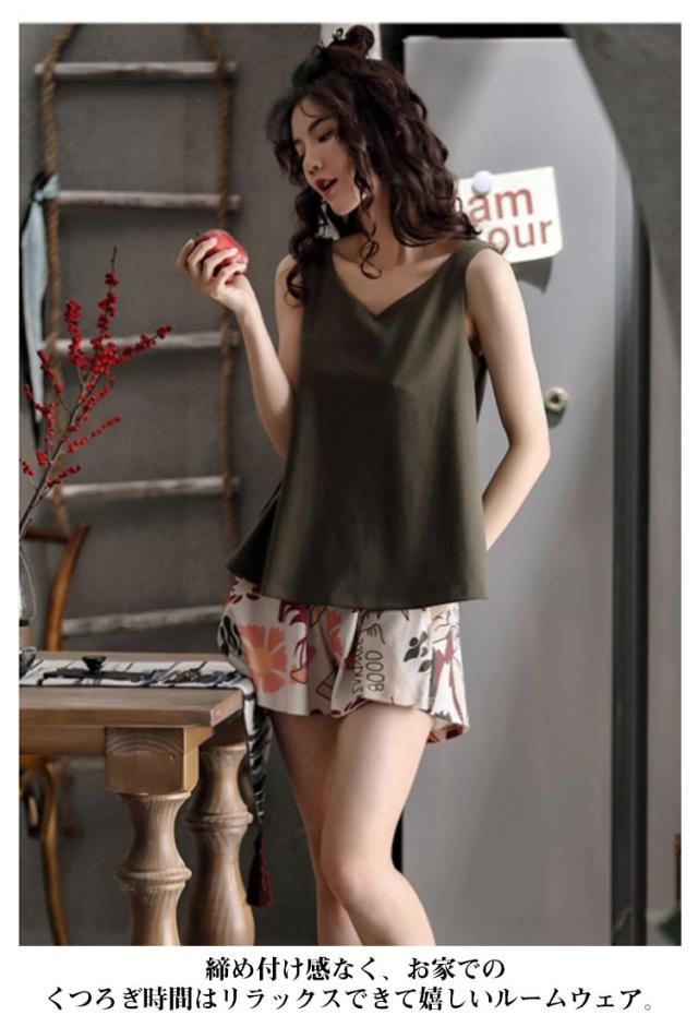 ルームウェア タンクトップ 涼しい 可愛い セットアップ 上下セット 寝間着 ショートパンツ キャミソール ノースリーブ 送料無料 女の子 レディース 花柄 夏用 パジャマ 部屋着 ナイトウェア 吸汗 速乾 大きいサイズ 高校生 中学生 M L XL 2XL