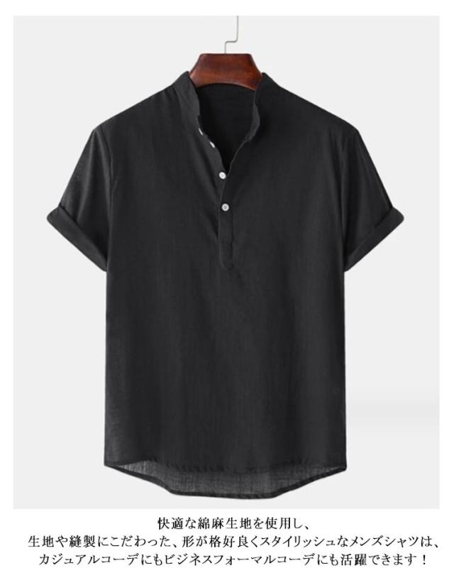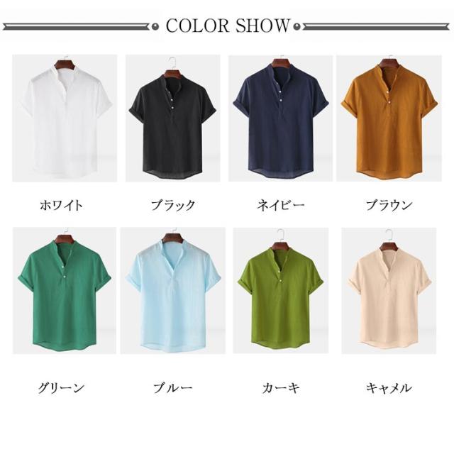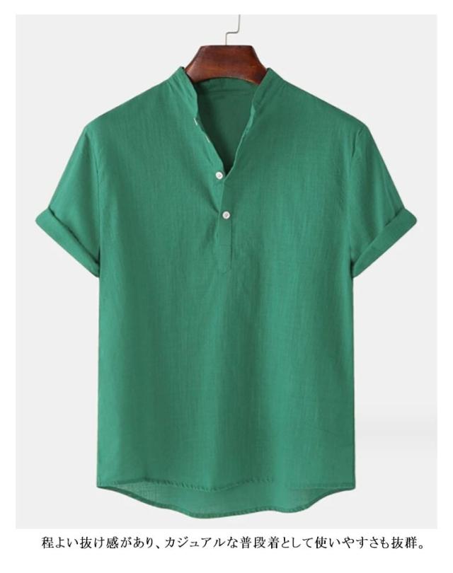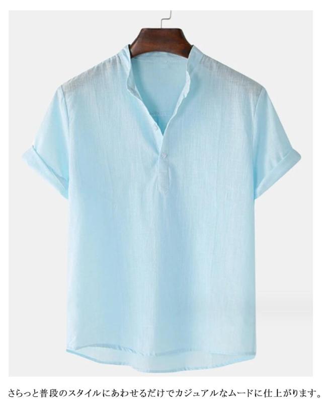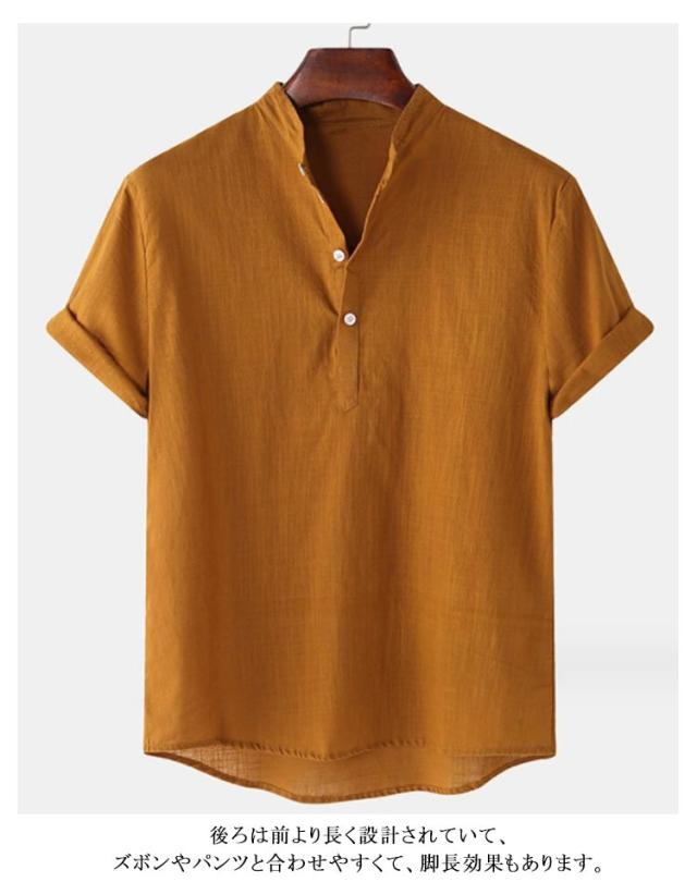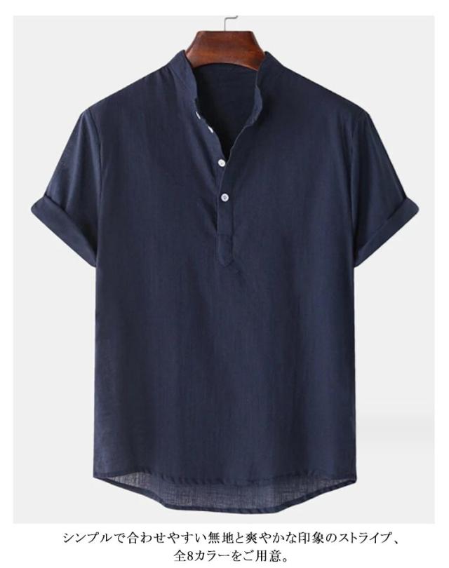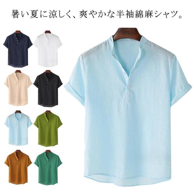 カジュアルシャツ メンズ カプリシャツ 半袖 綿麻シャツ 綿麻 無地 パナマシャツ プルオーバーシャツ 半袖シャツ メンズ メンズシャツ おしゃれ トップス スタンドカラー 大きいサイズ 薄手 おしゃれ 涼しい スキッパーシャツ ゴルフウェア 夏服 春 シャツ