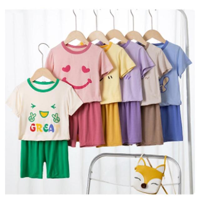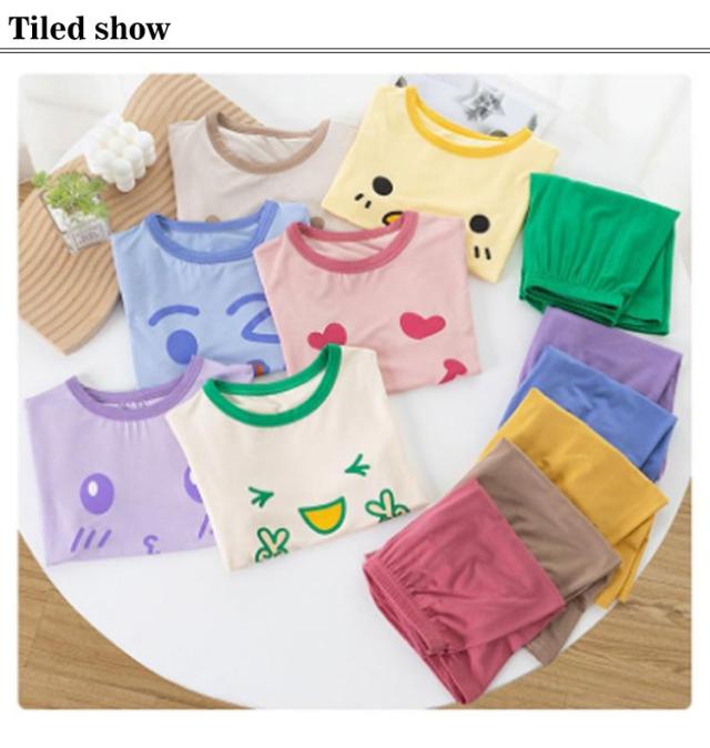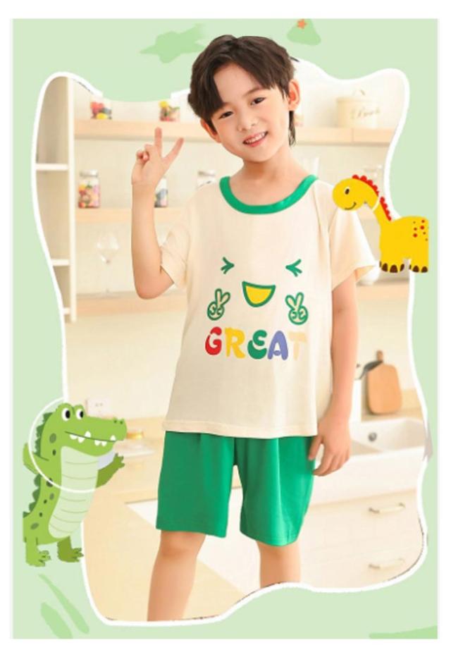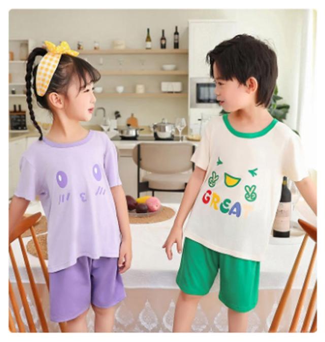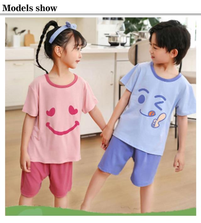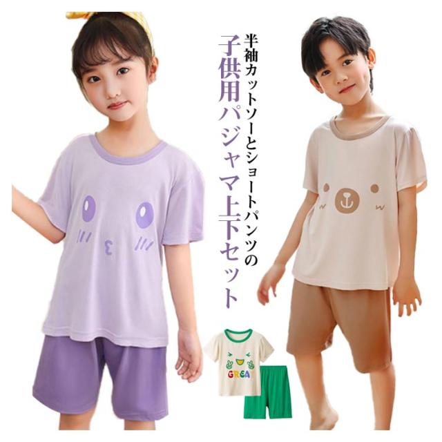 | 半袖カットソーとショートパンツの子供用パジャマ上下セット。 薄手の素材で暑い夏でも涼しく快適 メッシュ素材で通気性抜群 男の子、女の子どちらも着られるカジュアルデザインです | |