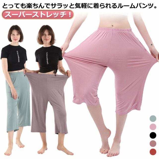 涼しい ボトムス 部屋着 夏 ルームパンツ さらさら レディース スーパーストレッチ 夏用 夏 薄手 パジャマ 8分丈 ルームパンツ ストレッチ 春夏用 無地 リラックス ウエストゴム 薄手 ゆったり お洒落 大きいサイズ