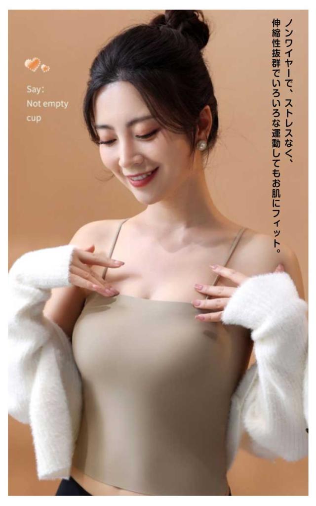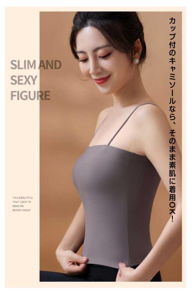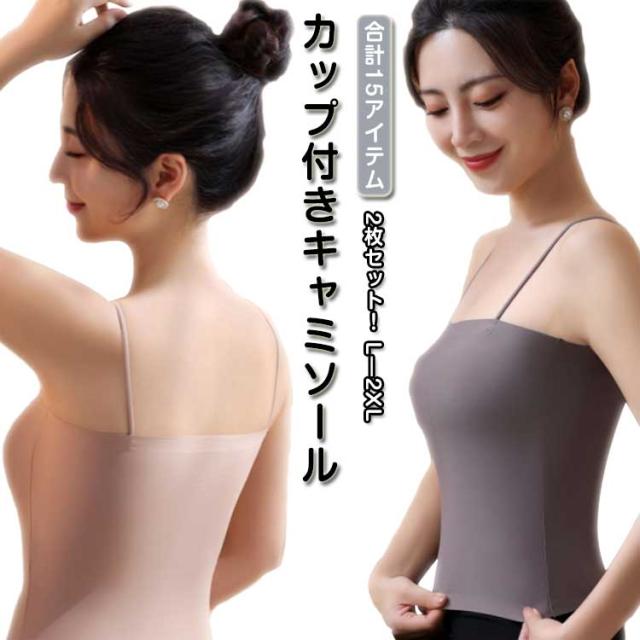 | 2枚セット!カップ付きキャミソール ボディーラインを美しく魅せてくれるキャミソールです♪ ノンワイヤーで、ストレスなく、伸縮性抜群でいろいろな運動してもお肌にフィット。 カップ付のキャミソールなら、そのまま素肌に着用OK! 可愛いお洒落なブラトップは1年中のインナーとして重ね着スタイルに大活躍間違いなし! | |