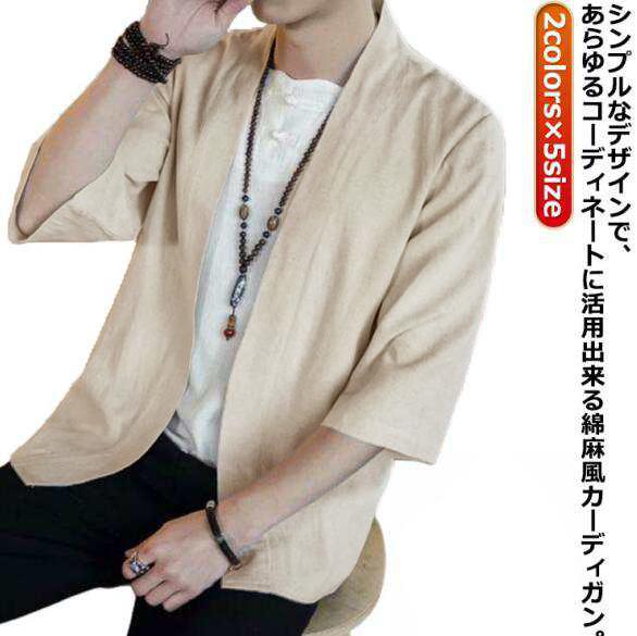 シャツ 大きいサイズ 無地 カーディガン カーディガン サマーカーディガン 夏服 メンズ 羽織り 和風 薄手 お洒落 綿麻風 和式 通気性 軽量 体型カバー ゆったり カジュアル