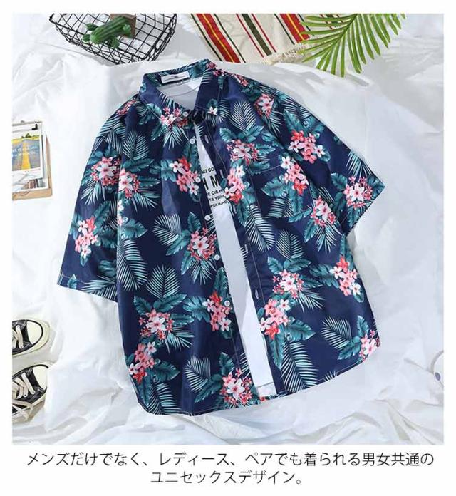 花柄シャツ 夏 アロハシャツ 半袖 体型カバー 総柄 夏服 カジュアルシャツ 涼しい 接触冷感 トップス メンズ ゆったり 開襟 重ね着 春夏 カジュアルシャツ おしゃれ 大きいサイズ 男女兼用 夏祭り 旅行 リゾート お揃い ペアルック ギフト 父の日
