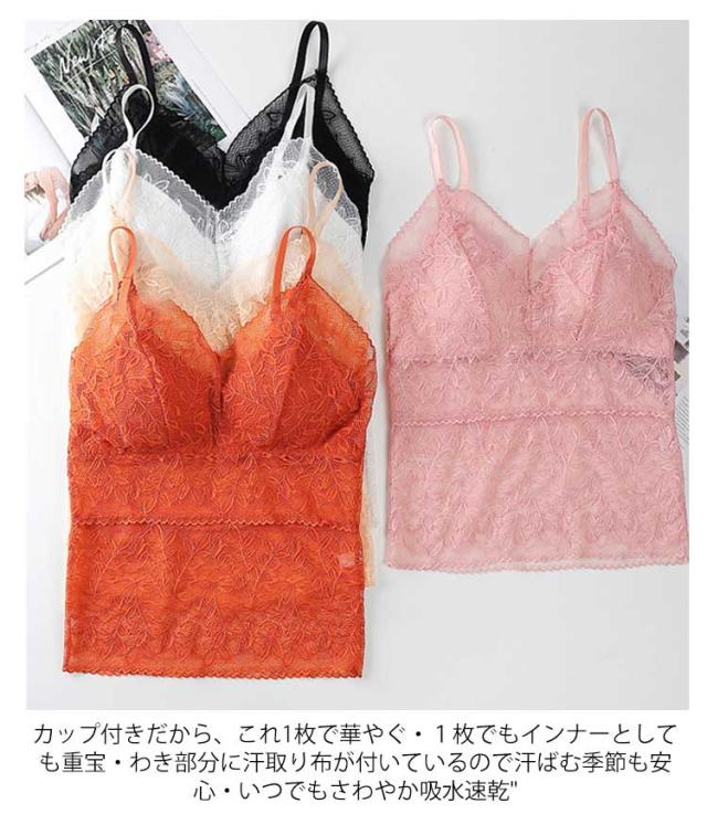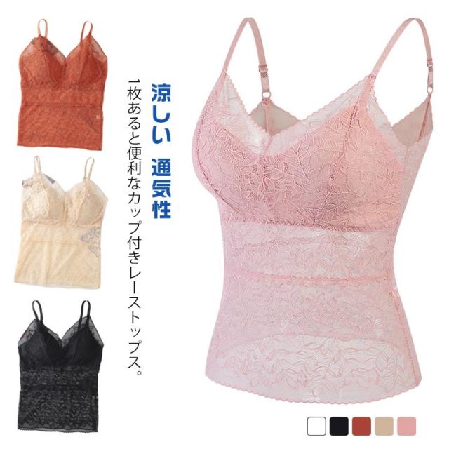 総レース インナー 下着 キャミソール 総レース タンクトップ 肌着 ブラトップ 透け感 Vネック シースルー レディース レース 大人 涼しい カップ入り セクシー 蒸れにくい 可愛い 通気性 軽い 吸汗速乾 春 夏 M