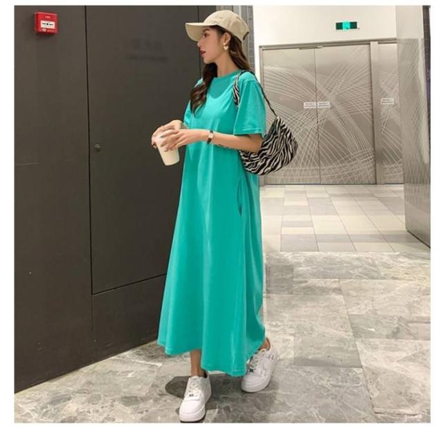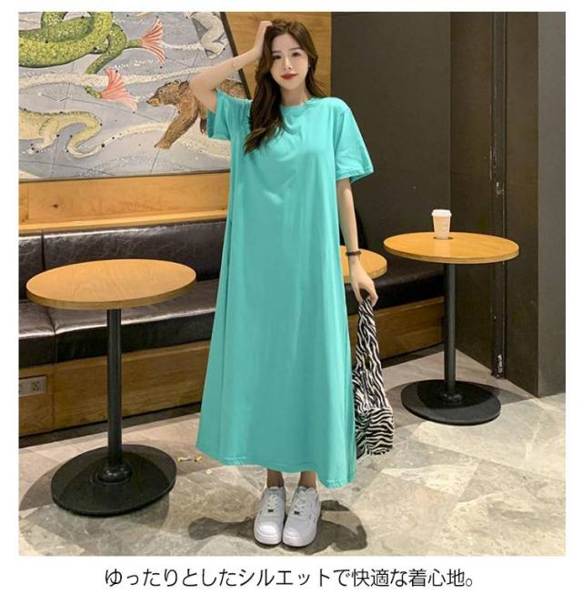体型カバー ゆったり トップス カジュアル ワンピ tシャツワンピース ワンピース オーバーサイズ Tシャツ ロング丈tシャツ クルーネック 大きいサイズ マキシ丈ワンピース tシャツワンピース シンプル 無地 マタニティ ロンT きれいめ 春 夏 半袖 大きいサイズ