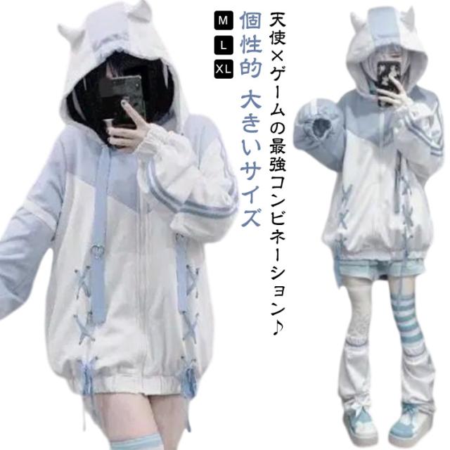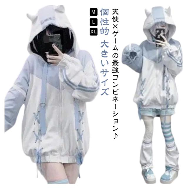 | 天使×ゲームの最強コンビネーション♪かわいいすぎるジャージ素材の天使界隈パーカーが登場♪ 柔らかいジャージ素材でつけ心地も良し♪ 大きめサイズで男の子の着用もOK♪ 使いやすい丈感で地雷系や天使界隈コーデに活躍してくれるアイテムです。 普段のかわいいコーディネートにだぼっと羽織ってコーデしてみてください♪ | |