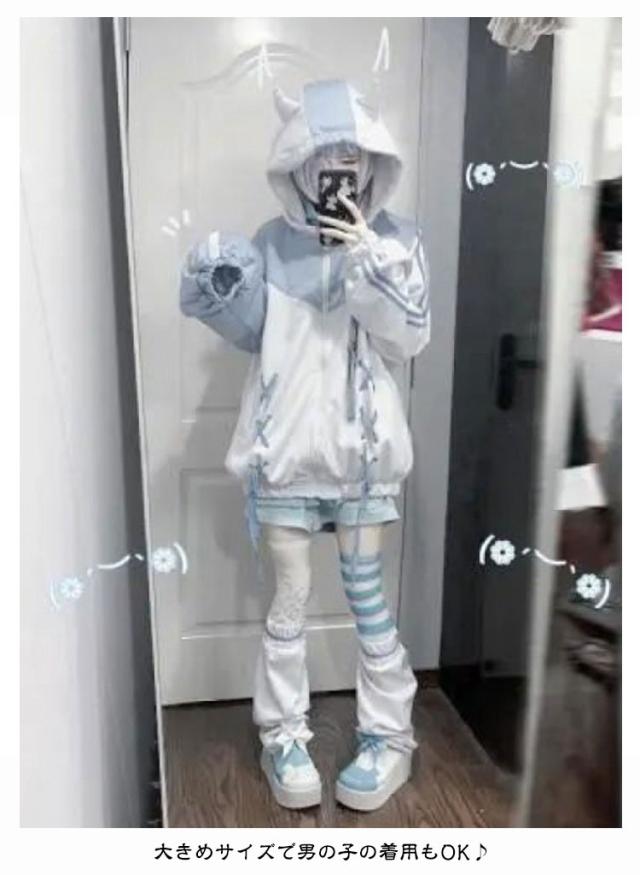 ジャージジャケット 地雷系 レディース トップス 天使界隈 量産型 サブカル ジャージ ジャージパーカー 原宿系 天使 水色界隈 水色 原宿 ジャージジャケット ファッション ユニックセス メンズ ブルゾン かわいい 病み かわいい 個性的 大きいサイズ ブルー サブカル 仮装