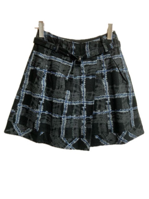 【中古】Dw2R センソユニコ スカート 38 チェック柄 黒 ブラック グレー 青 ブルー 綿 ボトムス レディース