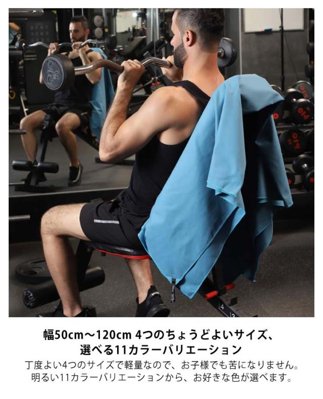 | 40x50cm/40x80cm/40x100cm/40x120cm 収納ケース付き 吸水速乾!快適に使えるマイクロファイバーのスポーツタオル! ■吸水速乾!快適に使えるスポーツタオル 両面フリース素材で吸水性と速乾性に優れています。 毛羽立ちにくく、柔らかい肌触りのマイクロファイバーで快適に使えます。 ■スポーツの時だけでなく、家事や洗車にも使える ジムやランニング、スイミングなどスポーツの時に。 すぐ乾くからキッチンまわりや洗車などにもご使用できます。 ■専用のメッシュポーチ付きでコンパクトに収納 付属の収納ケースで持ち運びはコンパクトで便利です。 メッシュ素材のケースなので、濡れたタオルもムレずに乾きやすい。 ■幅50cm〜120cm 4つのちょうどよいサイズ、選べる11カラーバリエーション 丁度よい4つのサイズで軽量なので、お子様でも苦になりません。 明るい11カラーバリエーションから、お好きな色が選べます。 | |