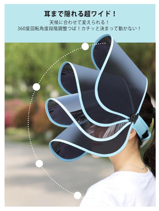 | ずれない! 落ちない! 超ワイドバイザー 小さく畳めて便利! 男女兼用・晴雨兼用 全9色 着脱可能なあご紐付き! ずれない! 落ちない! マジックテープ仕様のバックストラップで、頭の大きさに左右されずにすべての方にぴったりフィットします。 <お勧めポイント> ■紫外線を強力にカット! ・UPF50+で紫外線を99%カット ・シールド部分も視界良好◎ ■耳まで隠れる超ワイド! ・ワイドサイズのバイザーで耳の下までスッポリ隠してくれるから、雨・日差しどちらからも顔をしっかり守ります。 ・天候に合わせて変えられる!360度回転角度段階調整つば!カチッと決まって動かない! ・シールドを片手で上げ下げできる、スムーズ設計 ・日差しの向きや雨の強さにより、バイザーの角度を変えられるので、とっても便利! ■サッと手軽に装着可能! ・幅広マジックテープでフィット感◎ ・内側には、肌触りの良いタオル生地を使用 ■ズレない!飛ばない! ・フック部分にあご紐を引っ掛ける簡単取付け。風が吹いたり、自転車での使用でも飛ばされにくい。 ・頭囲にしっかりフィットするので、ズレにくい ・ランニングやサイクリングでもストレス無くお使い頂けます ■様々なシーンで使える! ・くるくるっと小さく畳むことができるので、持ち運びにも便利です ・洗濯干し、ガーデニング、お子様の公園遊び、屋外でのスポーツ観戦、ウォーキング等 | |
