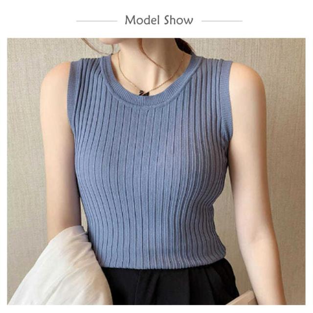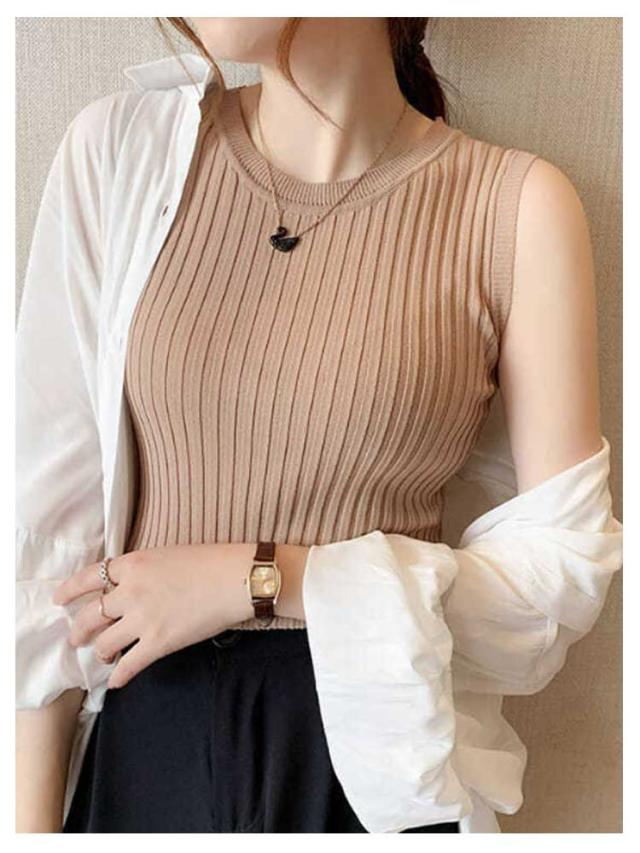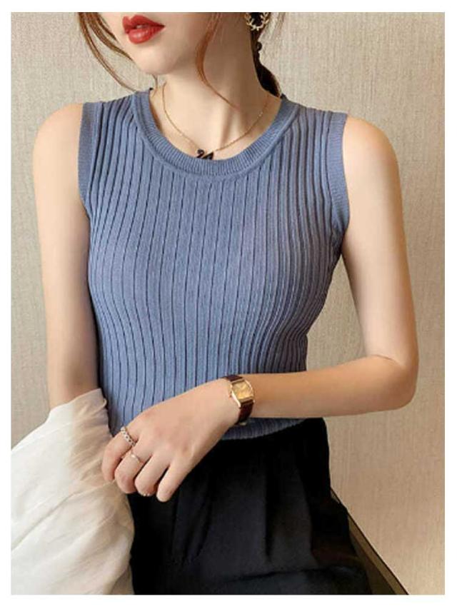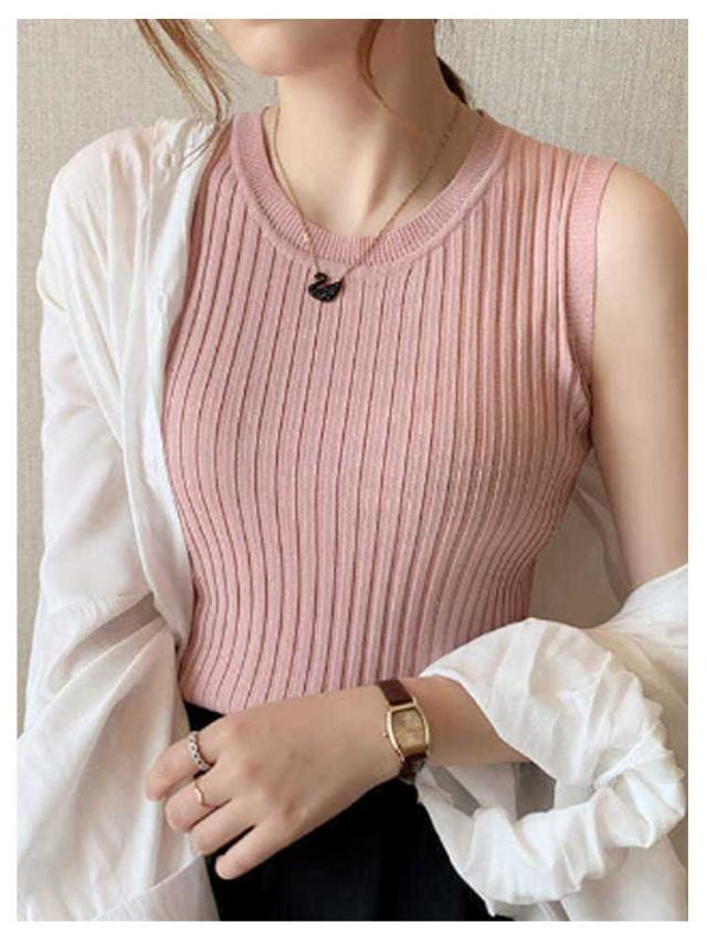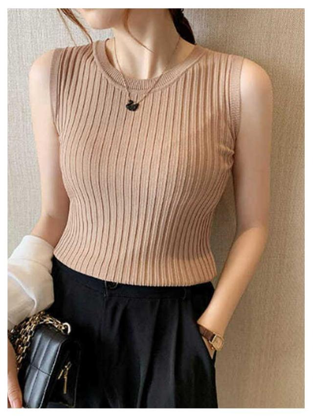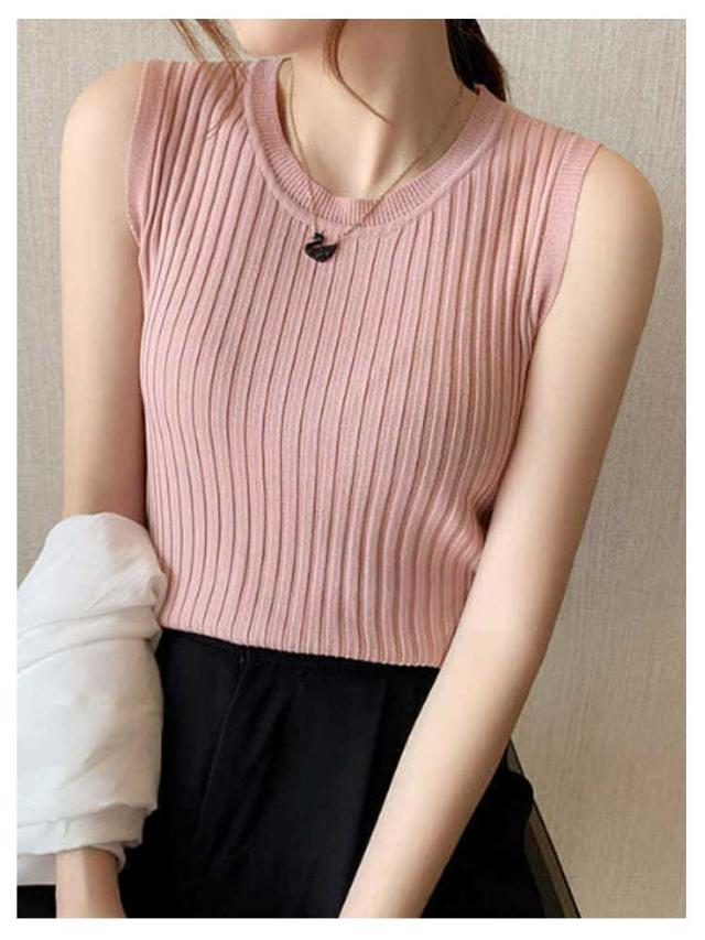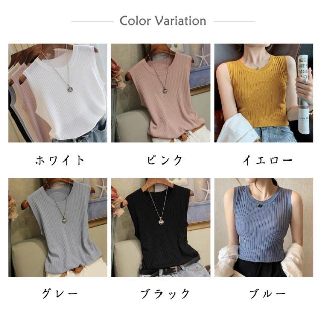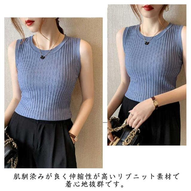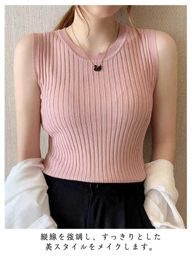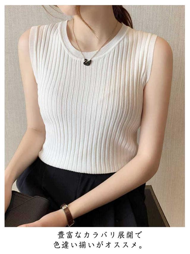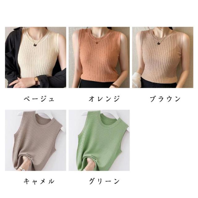 リブニットトップス 夏 トップス レディース ラウンドネック タンクトップ 全11色!ノースリーブ ニット 30代 ノースリーブニット リブ 秋 カジュアル コンパクト 可愛い 20代 全11色!ノースリーブ 40代