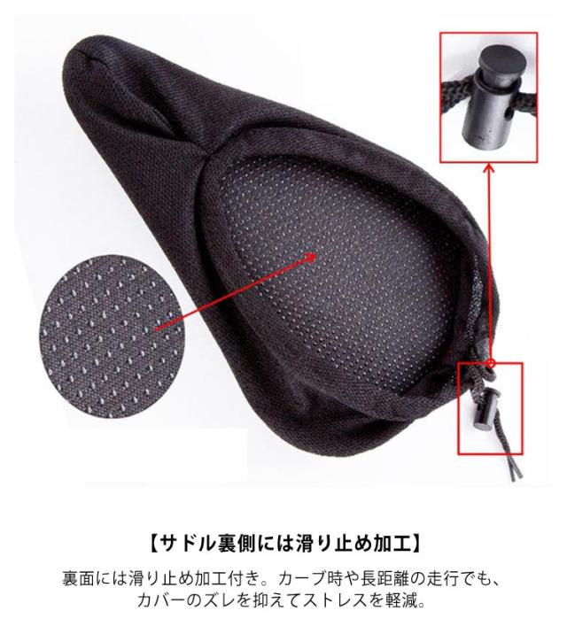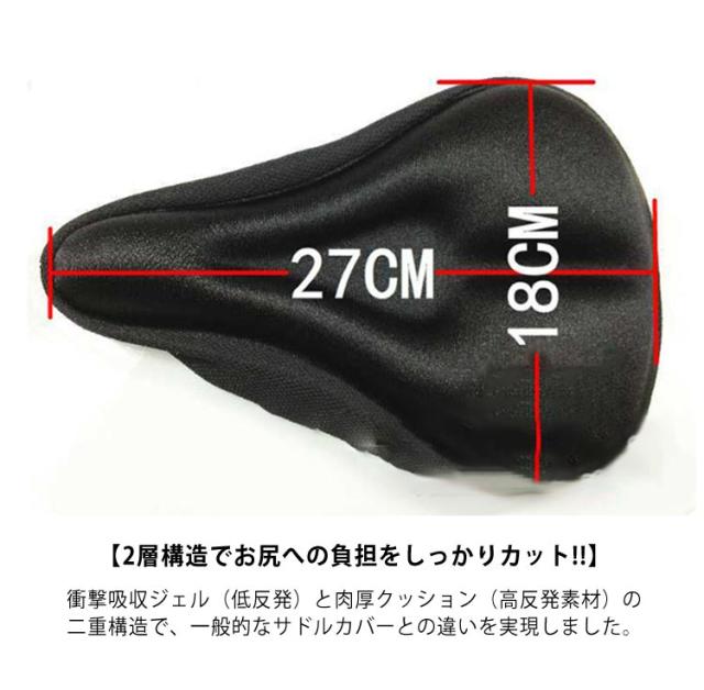 | “超肉厚クッション×衝撃吸収ジェル”二層構造で 座った時のお尻への負担を軽減! 自転車サドルカバー 防水カバー付き 【2個セット】 【2層構造でお尻への負担をしっかりカット!!】 衝撃吸収ジェル(低反発)と肉厚クッション(高反発素材)の二重構造で、一般的なサドルカバーとの違いを実現しました。 地面からの衝撃には肉厚クッションが反応、乗る方の体重など上からの荷重は衝撃吸収ジェルが圧力を分散します。 長時間のサイクリングも快適です。 【防水カバー付き】 天気の悪い日でも安心の防水カバー付きです。 【サドル裏側には滑り止め加工】 裏面には滑り止め加工付き。カーブ時や長距離の走行でも、カバーのズレを抑えてストレスを軽減。 【取り付け方法はカンタン!】 サドルに本品をかぶせて、コードストッパーを調整するだけ! 2ステップですぐに装着完了。 【通気性も抜群】 サドルカバーをしっかりと密着させるため、蒸れが発生することを考慮して側面にはメッシュ素材を使用。 【特殊な形が疲労を軽減】 中央にくぼみがある特殊な形を採用。 座った時に、尾骨への振動が伝わりにくく快適です。 | |