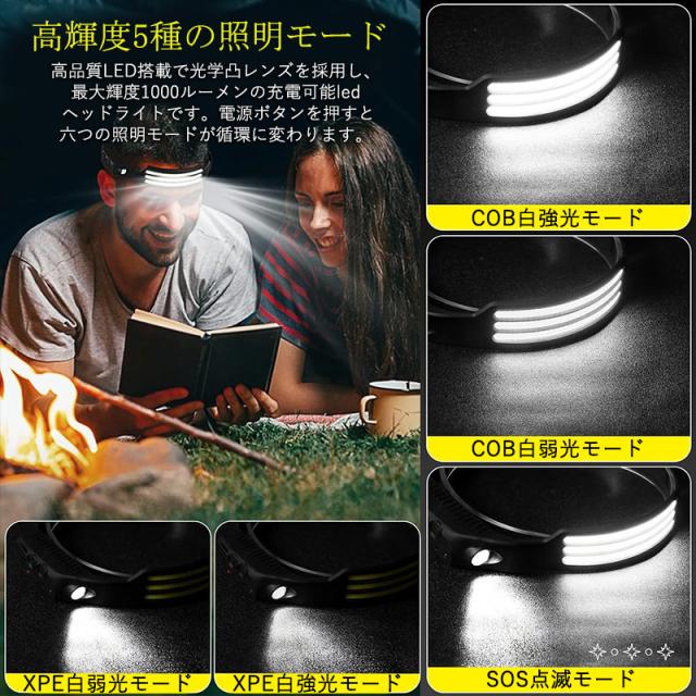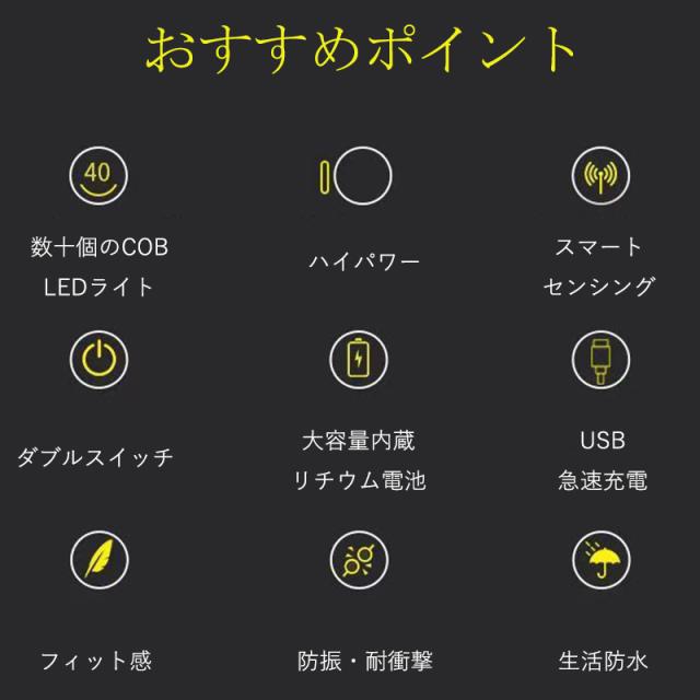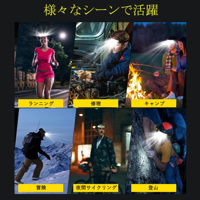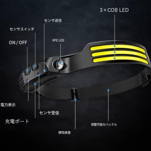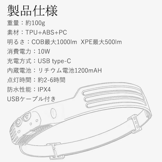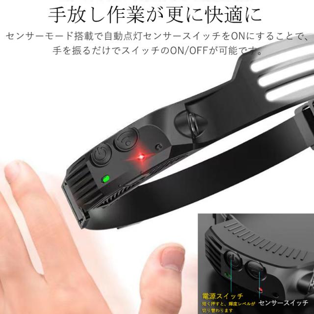 ヘッドライト LED usb 充電式 ヘッドランプ センサー機能付 長時間 軽量 停電対策 アウトドア キャンプ 防災 防水 23