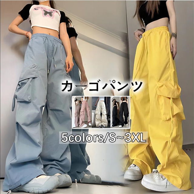 カーゴパンツ レディース ミリタリー ワイドパンツ ウエストゴム ヒップホップ ダンス ファッション カジュアル おしゃれ ゆったり 美シルエット 夏 送料無料