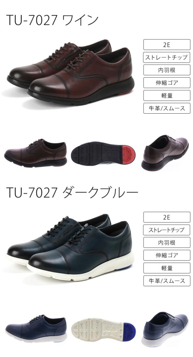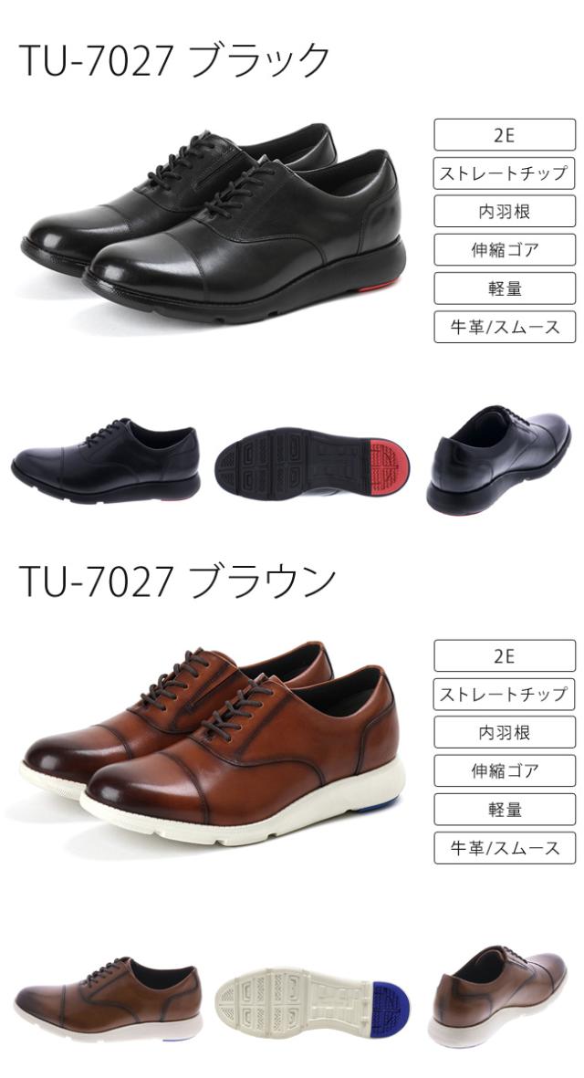 7027 ブラウン 2E 内羽根 軽量 ストレートチップ
