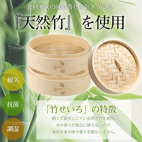 優れた抗菌性と調湿性を備えた竹製の中華セイロ。