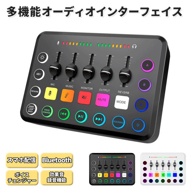 送料無料 2カラー オーディオインターフェース 多機能 XLR接続 スマホ配信 PC配信 Bluetooth接続 高音質 ボイスチェンジャー 効果音カスタム バッテリー内蔵 ブラック ホワイト