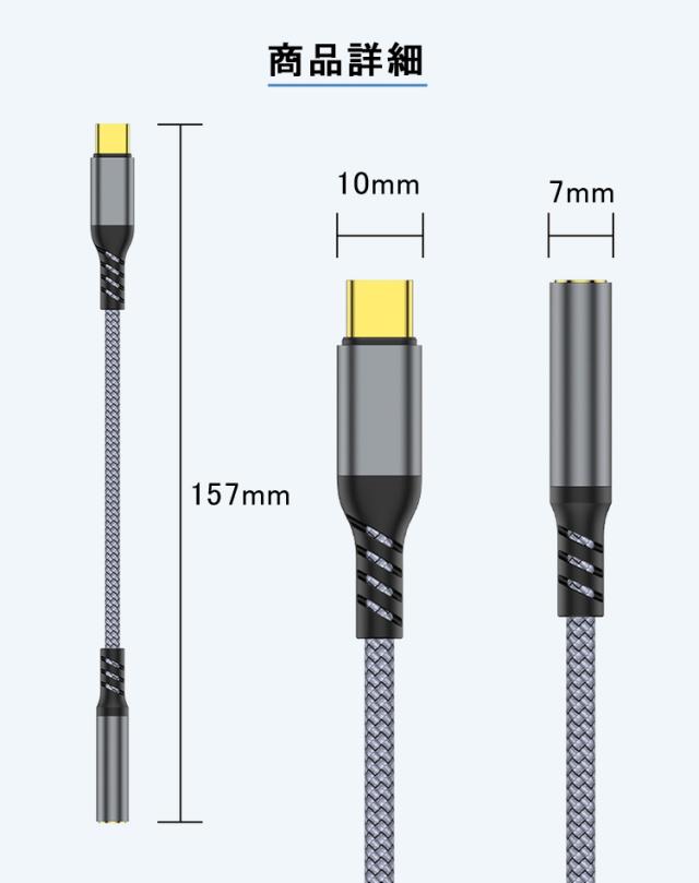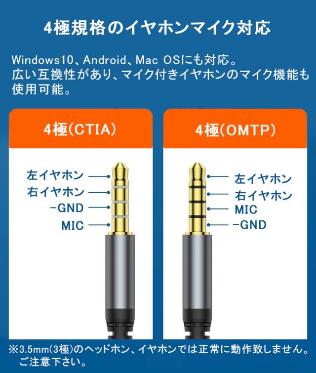コネクタ形状:USB Type-Cオス-3.5mm4極ステレオミニジャック