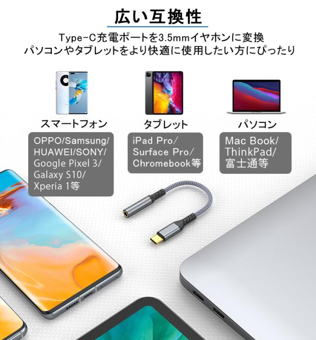 【Type-Cをイヤホンに変換 通話可能】イヤホン 変換アダプター Type-C to 3.5mm 音楽 DAC 変換ケーブル タイプC イヤホンジャック ヘッドフォン iPhone Android アンドロイド USB-C スマートフォン iPad mini6 Air4 Pro macbook Huawei GooglePixel SONY マイク/リモコン対応
