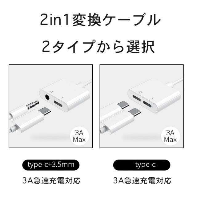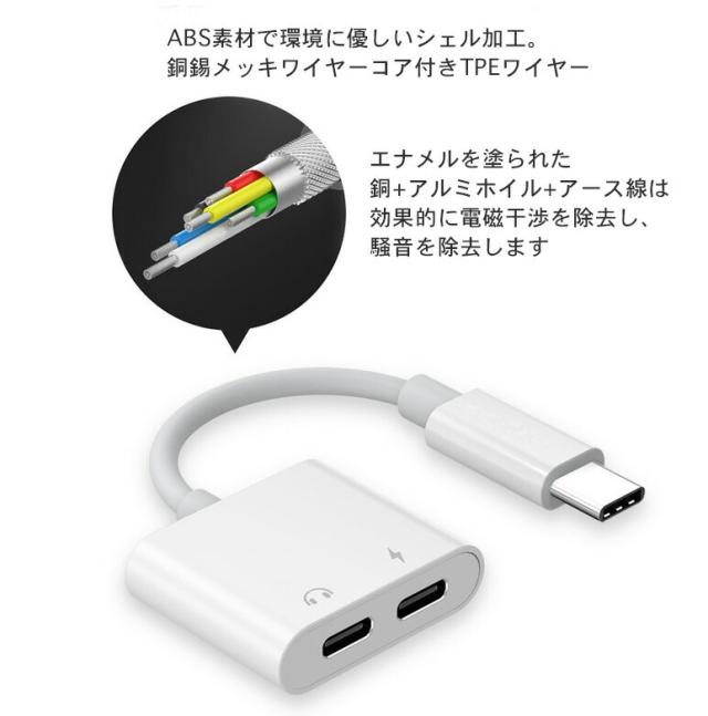 【送料無料】Type-C 変換ケーブル 2in1 TypeC イヤホン 変換アダプター apple Galaxy iPad pro アップル アダプター IOS12 音楽/充電 タイプC ヘッドフォン ジャックアダプタ イヤフォン ipad 充電 二股 ファーウェイ HUAWEI送料無料