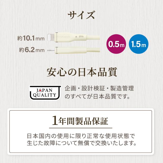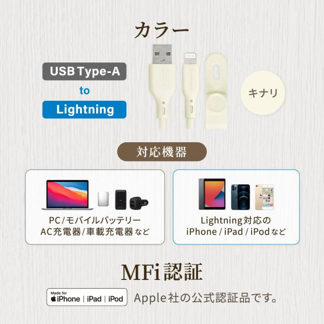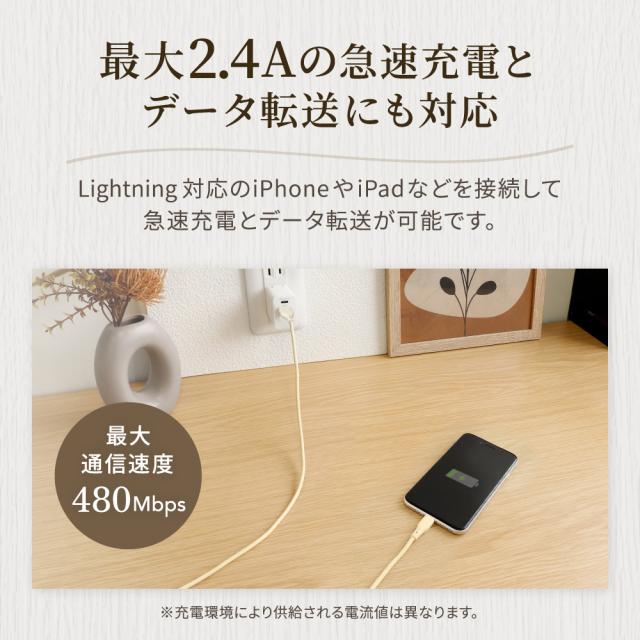 急速充電2.4A/データ転送 USB Type-A to Lightning ケーブル 0.5m 1.5m やわらかくて丈夫 耐屈曲1.5万回以上