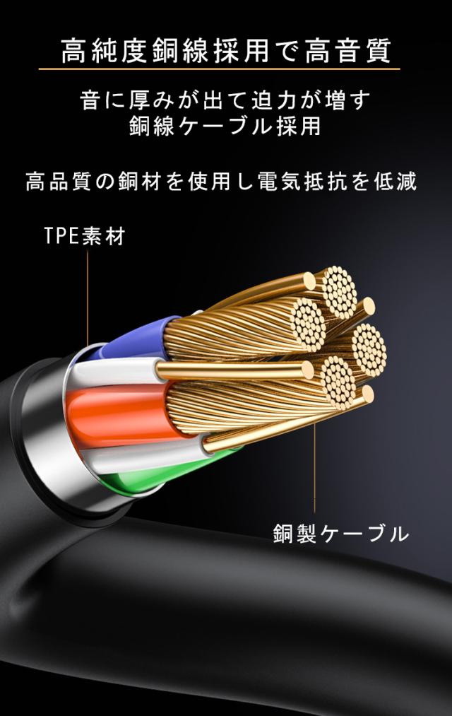 音に厚みが出て迫力が増す銅線ケーブルを採用。高品質の銅材を使用し電気抵抗を低減。