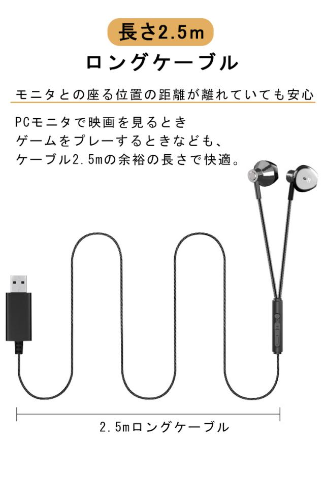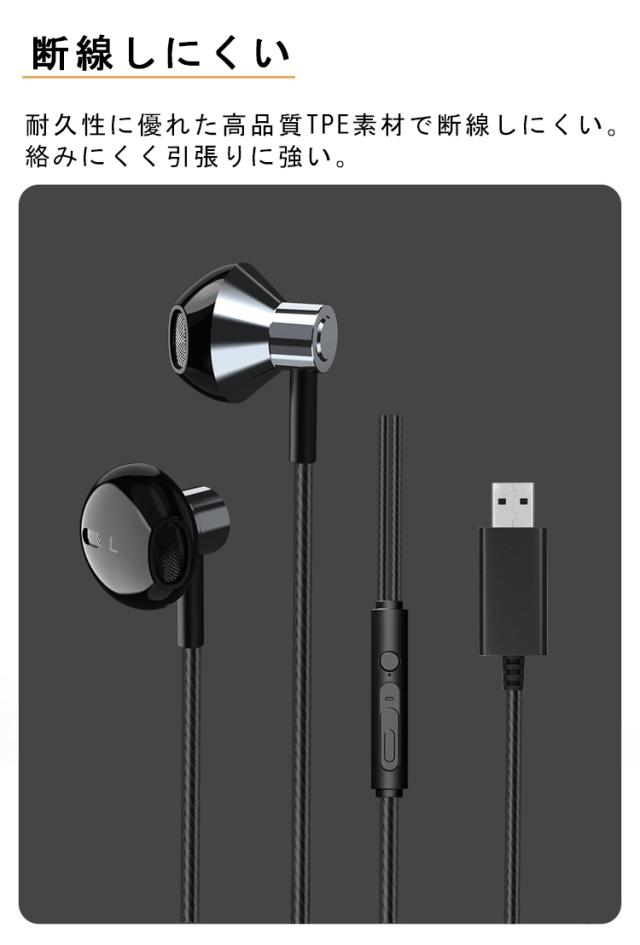 【USB接続 パソコン イヤホン マイク付き】ノートパソコン 用 イヤホン マイク 有線 リモコン機能 ステレオイヤホン Type-A 低音 高音質 通話可能 音量調整 長さ2.5m インナーイヤー型 テレワーク ゲーム ヘッドホン リモート会議 WEB会議 zoom