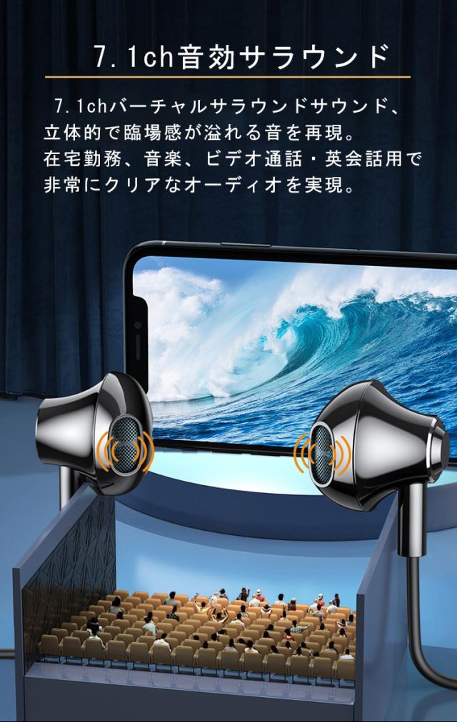 7.1chバーチャルサラウンドサウンド、立体的で臨場感が溢れる音を再現。在宅勤務、音楽、ビデオ通話・英会話用で非常にクリアなオーディオを実現。