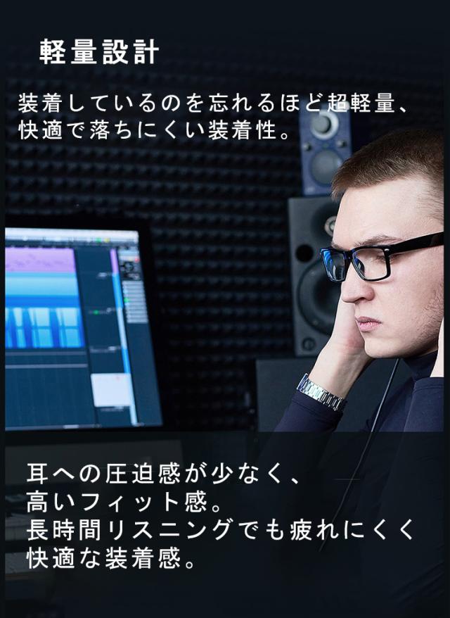 装着しているのを忘れるほど超軽量、快適で落ちにくい装着性。耳への圧迫感が少なく、高いフィット感。長時間リスニングでも疲れにくく快適な装着感。