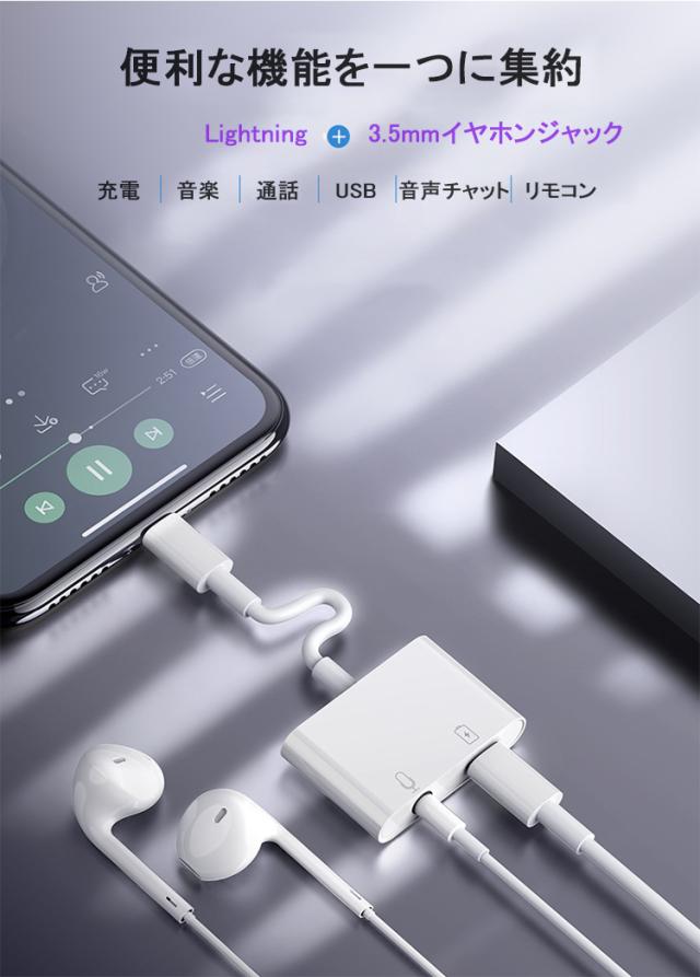 【通話可能】iPhone イヤホン 変換アダプター iPhone13 変換ケーブル ライトニング ケーブル 3.5mm×Lightning 2in1 iPad iPhone12 11 iPhone 13 mini Pro Max iPhone SE2 XR XS 8 7 変換アダプタ 音楽 充電 通話 リモコン マイク付き 高品質高性能版