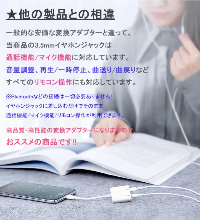 ※一般的な安価な変換アダプターと違って、当商品の3.5mmイヤホンジャックは通話機能/マイク機能/リモコン操作(音量調整、再生/一時停止、曲送り/曲戻りなど)に対応しています。